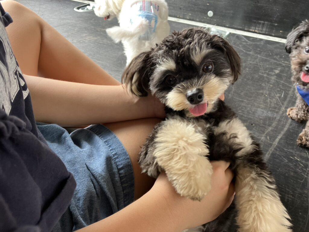 今日は従業員さんが愛犬を連れてきてくれて、トラックの上で\