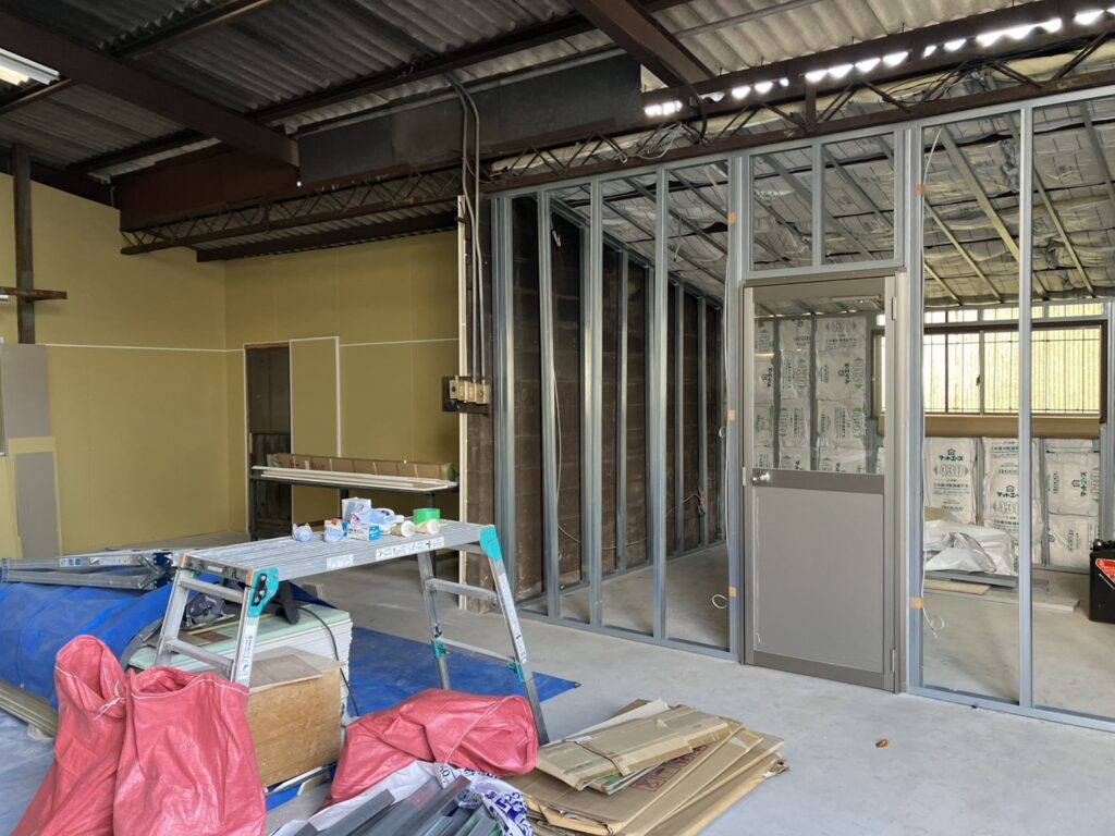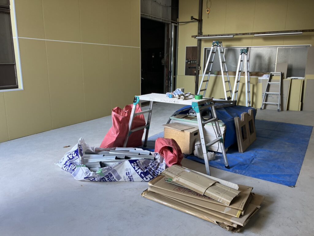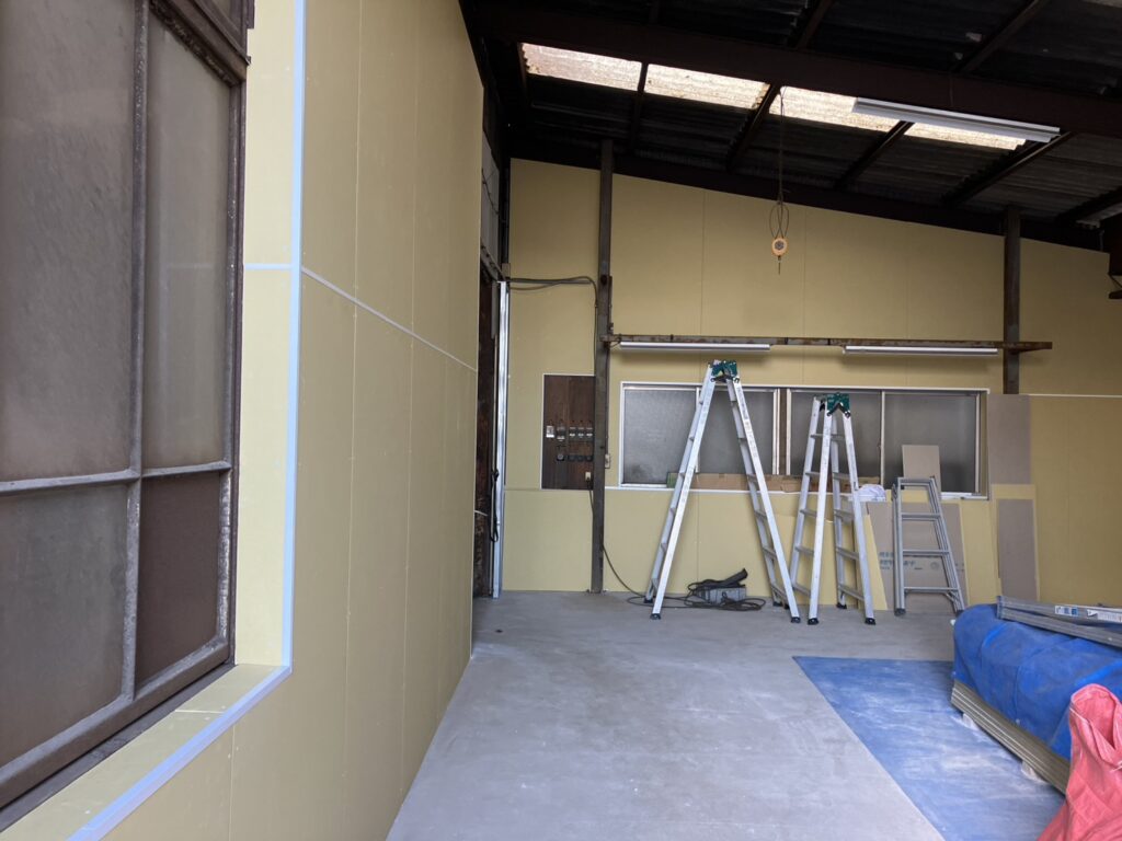 ブログ 2025.11.7 👦第2工場内装整備🚚 工場の壁にボードを貼ってもらって、一つ小部屋を作ってもらいました🌝床はコンクリートを流して整地してもらいとっても綺麗になりました🌝 完成まであと少し😄楽しみです😍